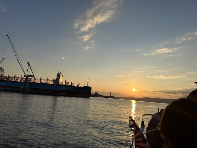 今回の「夕呉クルーズ」では、日の入り15分前出航で、自衛艦旗降下儀式が見ることができました!