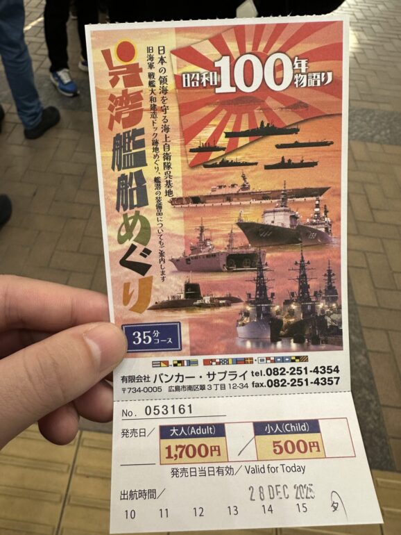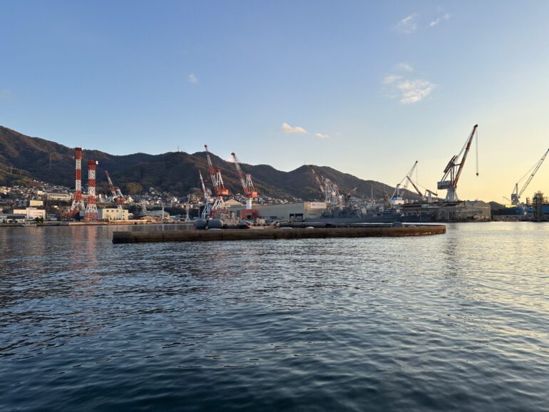 今回はタイトルにもあるように、年末に実家に帰省した際に、父と一緒に呉湾艦船めぐりの「夕呉クルーズ」に行ってきました。